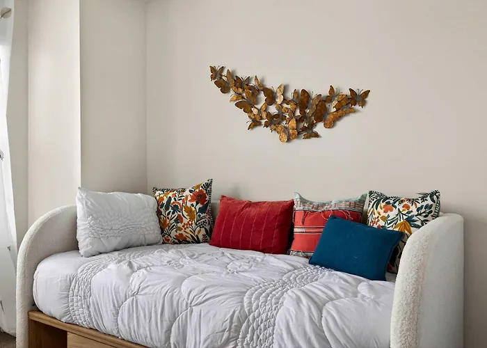 Located just 9 minutes' walk from the Abrams Creek Wetlands Preserve, Modern Mid-Century Townhome W Deck Near Festivals Winchester villa includes a patio with views of the city. Offering Wi-Fi, the accommodation is located 2.4 km from the Washington's Office Museum.