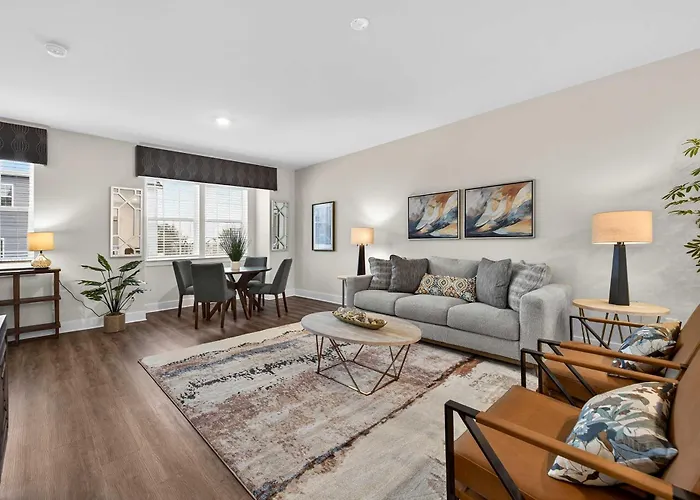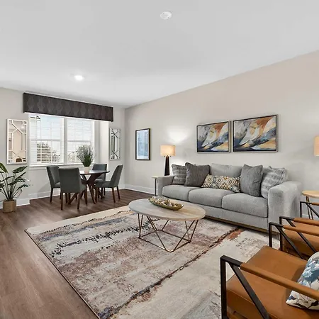 Modern Mid-Century Townhome W Deck Near Festivals villa ligt in de buurt van Zaxby's, waar gasten kunnen genieten van verschillende maaltijden.